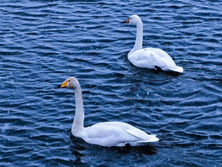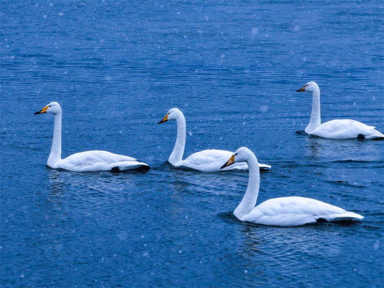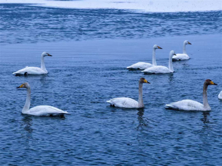據現場拍攝者“禦見大鵬”介紹,這些大天鵝正處於北歸遷徙途中,將瓦房店東風水庫作為重要的能量補給中轉站。紛飛的小雪中,潔白的天鵝或靜立在覆雪的冰面,或在未封凍的水面遊弋,與清冷的水庫風光相映成趣,構成了一幅人與自然和諧共生的生態畫卷。