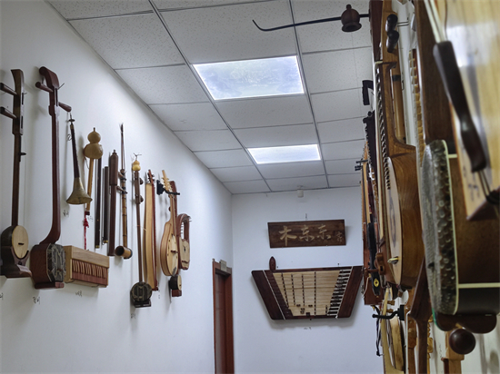 在營口大石橋市一間不足三十平方米的普通民居裏,刨花捲曲如浪,堆滿角落。墻上,形態各異的樂器靜靜懸挂——有的修長如彎月,有的方正若古匣。這是張恩東的工作室,也是他與五十余件樂器“孩子”共同生活的家。
