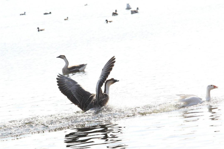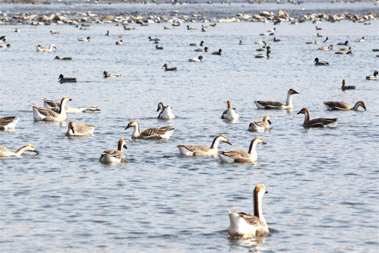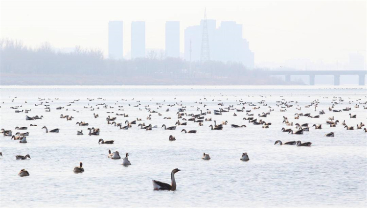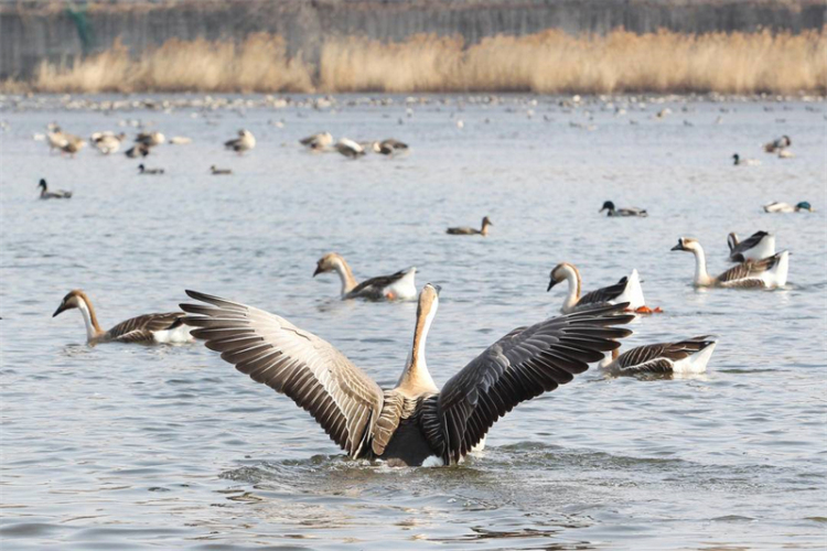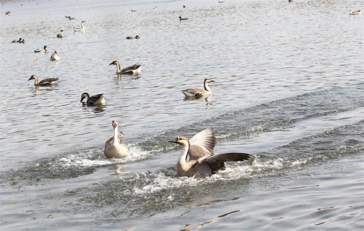 3月9日,瀋陽鳥島附近渾河流域迎來春日盛景,千余只鴻雁齊聚水面,成為沈城一道生態美景。渾河水質清澈,碧波盪漾,淺灘濕地水草豐美,為候鳥提供了舒適的棲息環境。岸邊市民駐足觀賞、拍照記錄,人與鳥類互不打擾、和諧共處,勾勒出自然共生的美好畫面。(本組圖片由記者 白琳 攝)