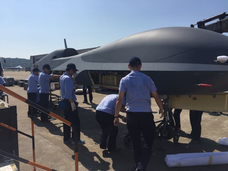 珠海航展即將開幕,不少展品正在緊張布展中。中航工業成飛也將在珠海航展中拿出堪稱“中國版全球鷹”的雲影無人機進行展出。圖為參展工作人員正在安裝“雲影無人機”。