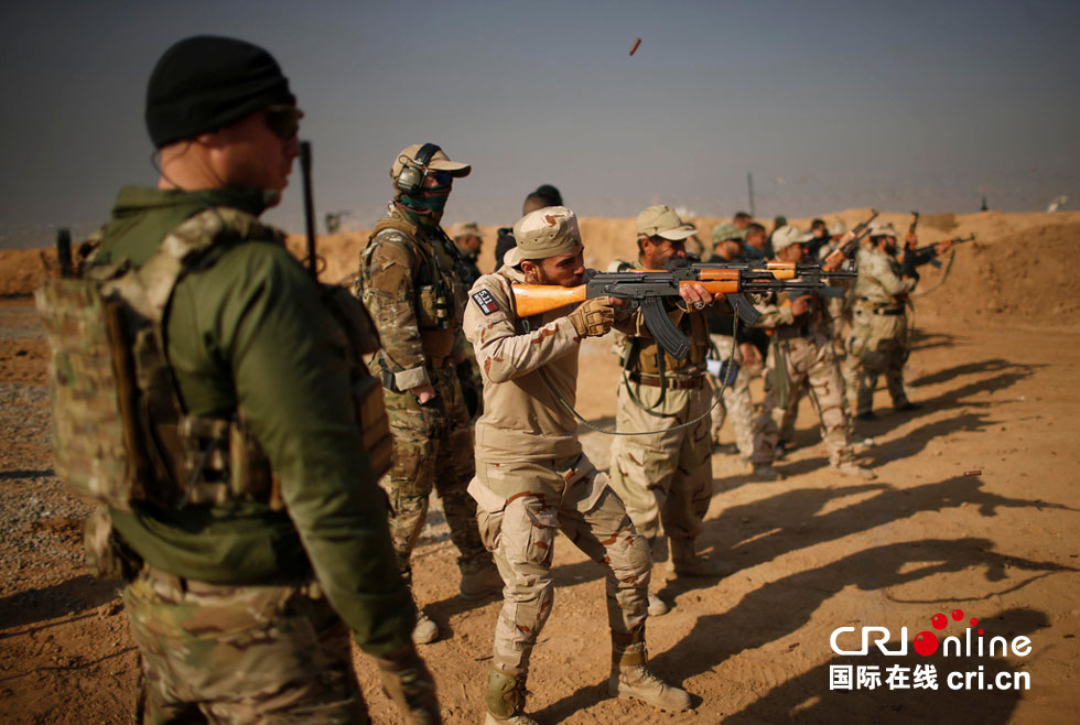 當地時間2016年12月11日,伊拉克邁赫穆爾,美國特種部隊在邁赫穆爾營地協助訓練伊拉克士兵。圖片來源:視覺中國