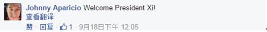 網友:Beluli Asmarino Eri Fesehaye:中國國家主席,歡迎你來到美國。