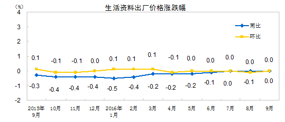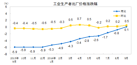 國家統計局:9月份PPI同比上漲0.1%
