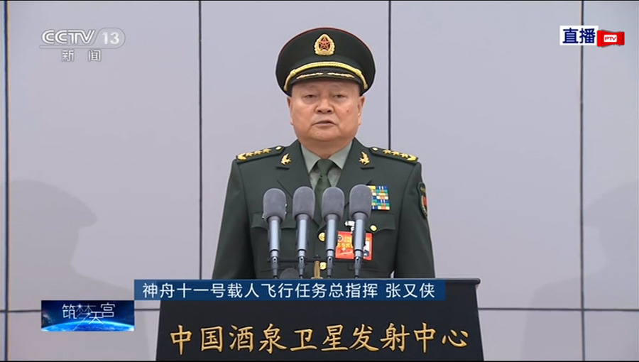 神舟十一號載人飛行任務總指揮張又俠宣佈:神舟十一號載人飛船發射任務圓滿成功