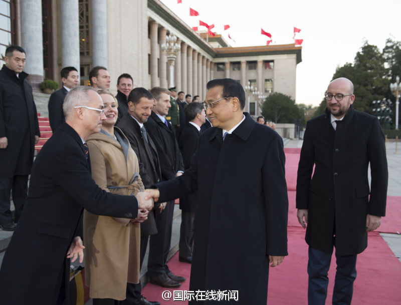 國際在線消息:國務院總理李克強31日下午在人民大會堂東門外廣場舉行儀式,歡迎來華進行正式訪問的比利時首相米歇爾。