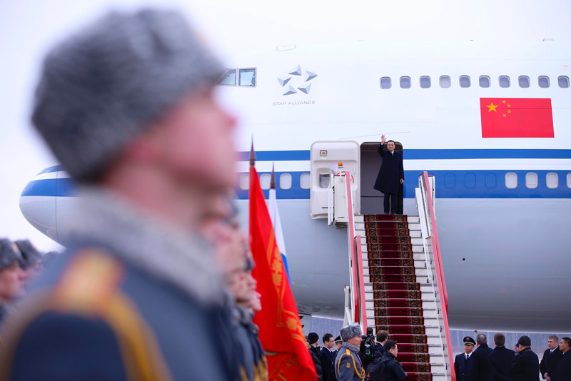 李克強總理當地時間6日乘專機抵達俄羅斯聖彼得堡,出席中俄總理第21次定期會晤並對俄羅斯進行正式訪問。俄政府高級官員到機場迎接,併為李克強舉行隆重歡迎儀式。李克強檢閱了儀仗隊。在俄期間,李克強將會見普京總統,同梅德韋傑夫總理舉行會晤,並出席有關人文活動。