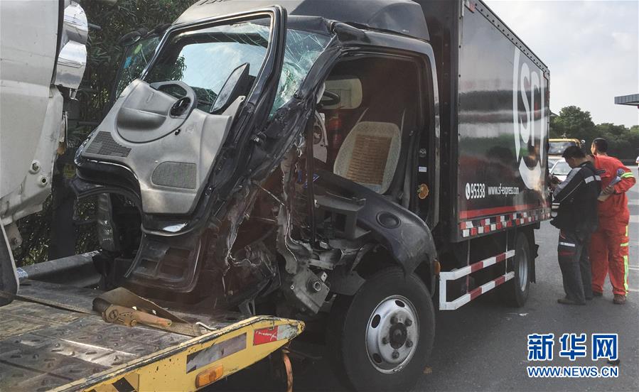 11月6日,一輛事故車輛被拖離現場。當日早晨,上海浦東區域內的S32公路因大霧引發兩起多車追尾事故。截至下午17時,死亡人數上升至9人,另有40多人在醫院救治。新華社記者 裴鑫 攝