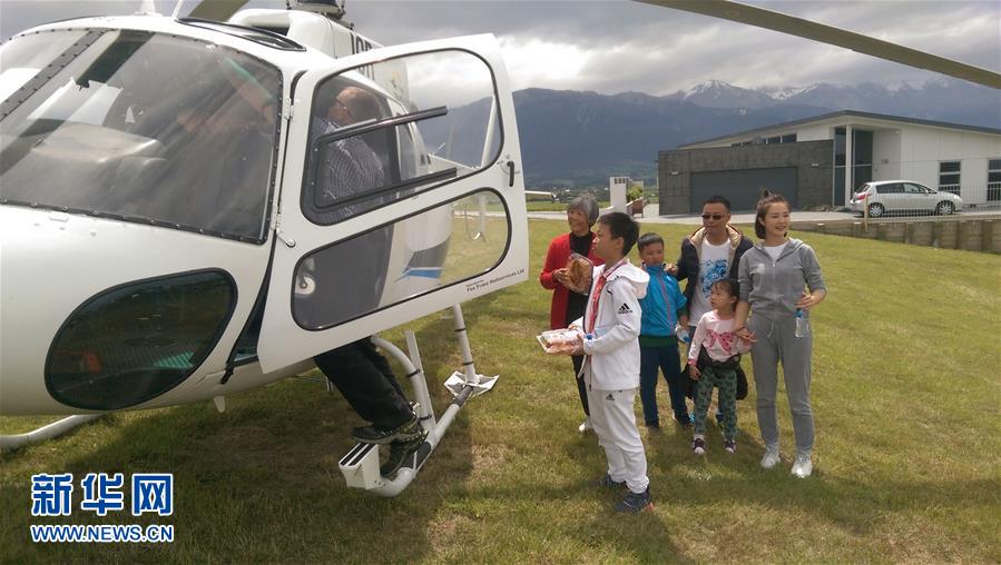11月14日,在新西蘭凱伊庫拉,中國駐克賴斯特徹奇總領館工作人員安排被困中國遊客乘坐直升機撤離。新華社記者宿亮攝