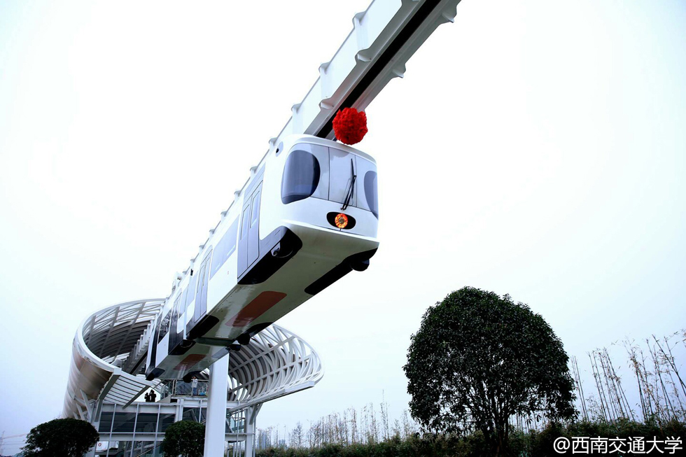 據華西都市報微博消息,21日下午,世界首條新能源空鐵試驗線在成都雙流成功投入運行。試驗線全長1.4公里,時速近60公里。新能源空鐵,是以鋰電池動力包為動力源的空中懸挂式軌道列車系統,而萌萌的熊貓車廂裝扮更是搶眼啦!