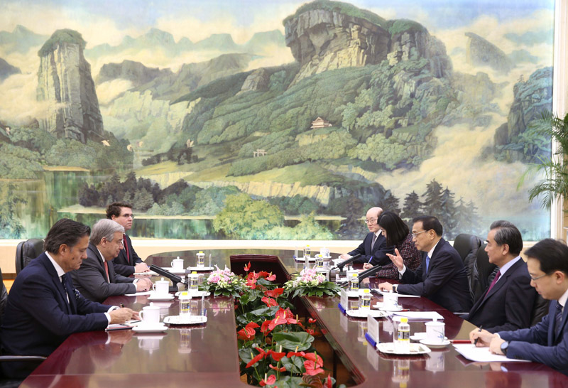 李克強會見候任聯合國秘書長古特雷斯