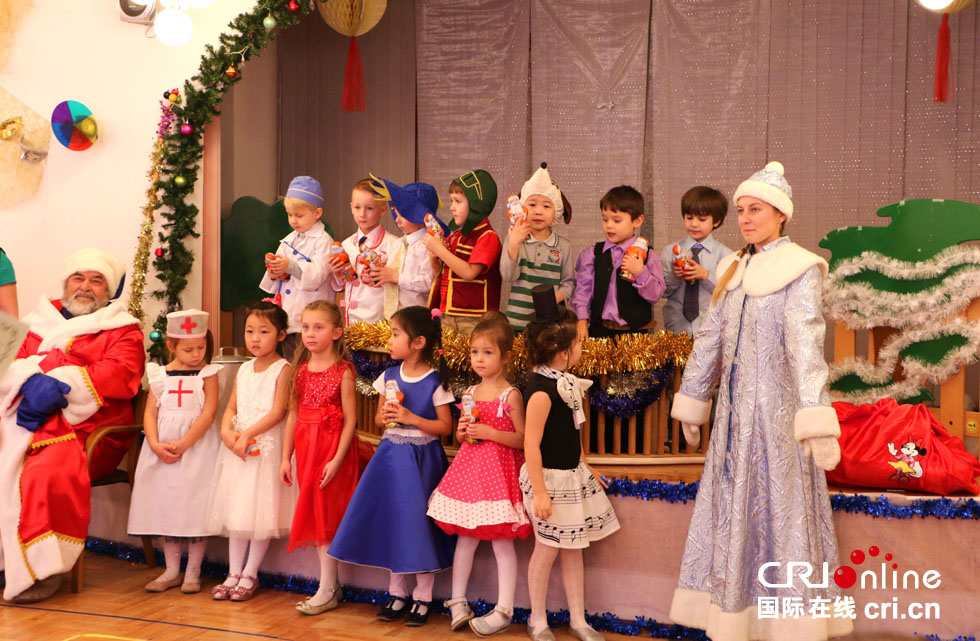 成立20年的綠洲幼兒園一片節日盛裝。家長們共同製作的綵球挂滿房間,墻上印有孩子笑臉的照片記錄著美好童年。身著漂亮服裝的俄中孩子們在老師的鋼琴伴奏下,載歌載舞,吟詩作畫。孩子們與俄羅斯版的聖誕老人——嚴寒老人和雪姑娘之間的遊戲與互動,贏得大家陣陣笑聲和掌聲。
