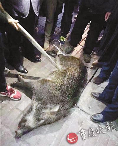 野豬下山夜遊大學校園被民警4槍撂倒