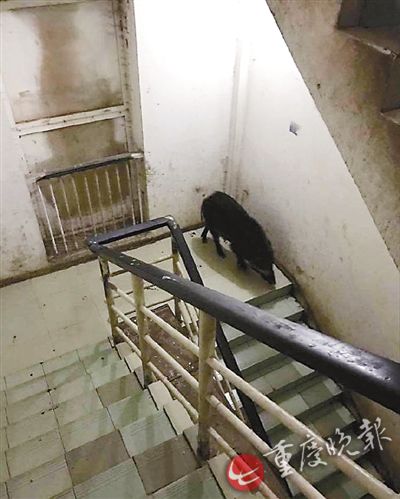 野豬闖進樓道