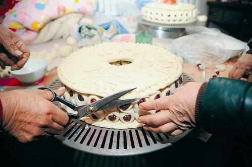 每年臘月和年初都是村裏結婚、訂婚、過壽的旺季,王銀菊的花饃生意自然異常紅火,街坊鄰裡都來預訂,王銀菊忙得不可開交,連串親戚的工夫都沒有。早上6點起床,一直到晚上10點才收工,製作花饃時,王銀菊對每道工序都十分講究,溫水、發酵、揉面、捏形、蒸制、著色、插面花……都按照嚴格的規範純手工完成。王銀菊講,“幹這個行當必須要心靈手巧”。王銀菊還展示了她最拿手的十二生肖花饃,一個個小動物惟妙惟肖。