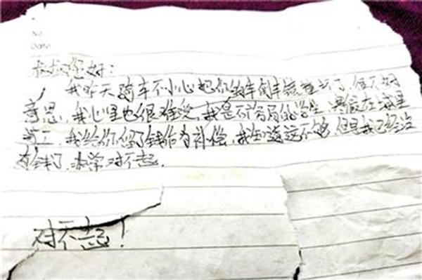 第二天,車主薛戰民開車時,發現了道歉信和錢,被感動。他報了警,希望警方找到這名學生,將錢還給對方並資助其讀書。