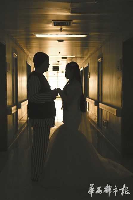 但與普通婚紗照不同的是,他們倆的拍照地點在四川大學華西醫院病房,祝福聲來自醫生與護士。