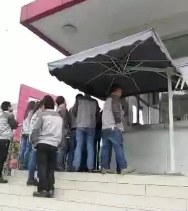 一直到週一,工人們準備正常返廠區工作時,卻被保安攔在門外,最終經過一番理論,大家好不容易進入廠區,卻又被告知不能進入生産車間,只能待在工廠的另外一處房間內,可以抽煙喝水,不被安排任何工作。