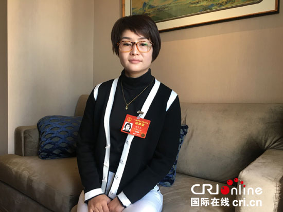 人大代表鐵飛燕在接受記者採訪。攝影:趙春曉