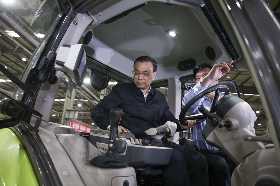 在開封期間,李克強還考察了中聯重科開封工業園,並登上一輛自主研發的230馬力拖拉機,這款拖拉機帶動的機械深耕可達半米。過去在東北地區考察時,李克強總理曾經提出,要在製造大馬力拖拉機上實現突破,此後國産拖拉機一路加“馬”。李克強表示,農業現代化需要大馬力拖拉機,“中國製造2025”更需要大馬力發動機。