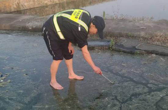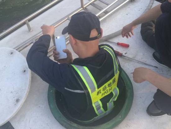 由於事出突然,污水車上沒有準備長筒套鞋、口罩,但考慮到旅客遺失了這麼貴重的物品,心情肯定萬分焦急,姚偉和王川等不及同事為他們送來“裝備”,就脫了鞋襪赤腳踩進這十多米長的污水區中,嘗試著用頭柄處裝有磁鐵的工具在污水中吸附查找。