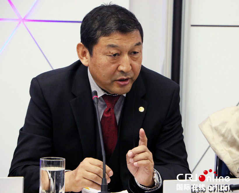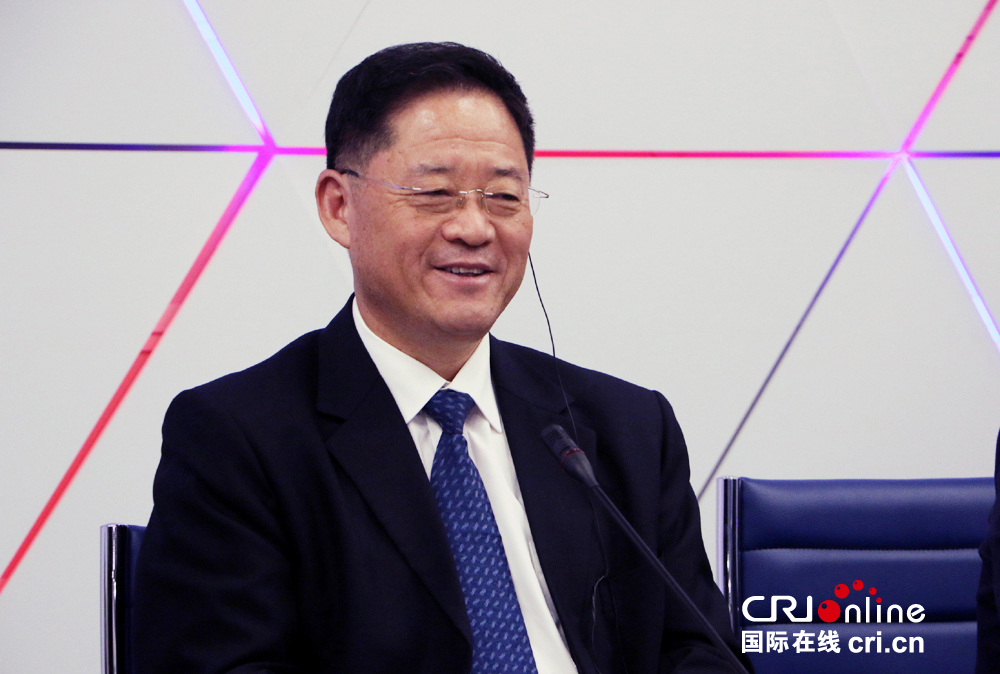 中俄友好、和平與發展委員會媒體理事會中方主席、中國國際廣播電臺臺長王庚年在圓桌會上作主旨發言(拍攝:李潔)