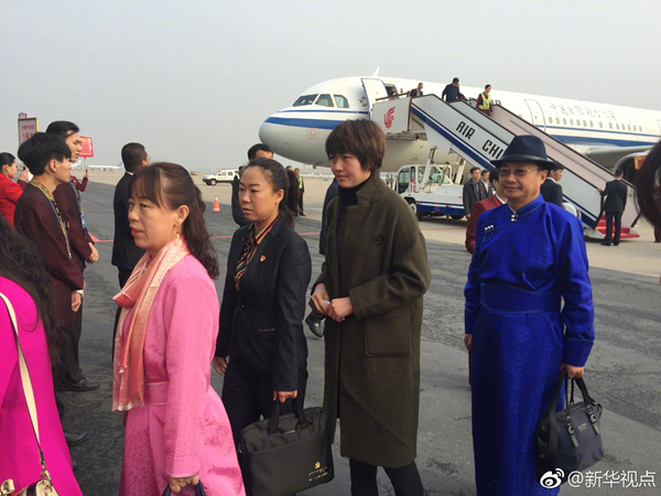 來自內蒙古自治區的黨的十九大代表,10月15日上午9時許乘飛機抵達首都國際機場。新華社記者謝環馳、丁海濤現場拍攝