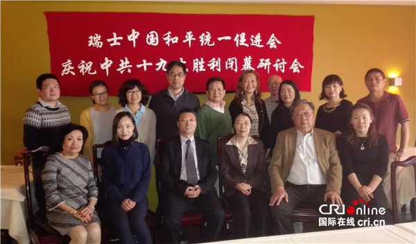 國際在線報道(中國國際廣播電臺記者 劉素雲):瑞士中國和平統一促進會29日在巴塞爾舉辦研討會,慶祝中國共産黨第十九次全國代表大會勝利閉幕。與會者認為,十九大報告特別重申了堅持“一國兩制”和推進祖國統一,彰顯了中國共産黨人對國家、民族和人民的歷史責任擔當。