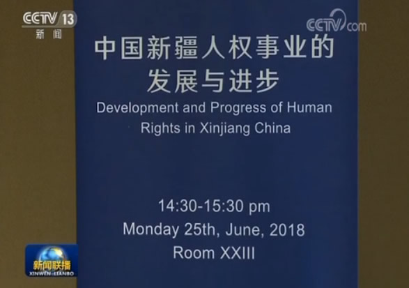 央視網消息(新聞聯播):在聯合國人權理事會第38次會議期間,中國人權研究會25號在日內瓦萬國宮舉辦“新疆人權事業的發展與進步”主題邊會,全面介紹新疆在扶貧、教育、文化、反恐、醫療等方面所採取的措施和取得的成就。這是中國非政府組織首次在聯合國人權理事會會議期間舉行的新疆主題邊會。