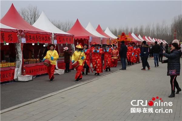 此次民俗文化節節目豐富,氣氛熱烈。馬術對戰、花轎巡遊、高蹺表演、秦腔表演、京東大鼓、老北京銅人巡遊......遊客們既可以欣賞到精彩多樣的表演,又可以參與到套圈、馬術、滑雪等遊樂項目中。此外,位於中心廣場一側的美食街上,匯聚了全國各地特色小吃,會場氣氛喜氣洋洋,年味十足。
