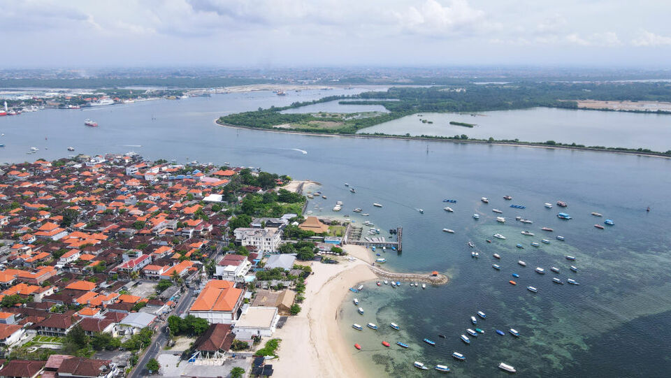 這是11月12日在印度尼西亞巴厘島拍攝的丹戎伯諾阿海灘風光(無人機照片)。新華社記者 徐欽 攝