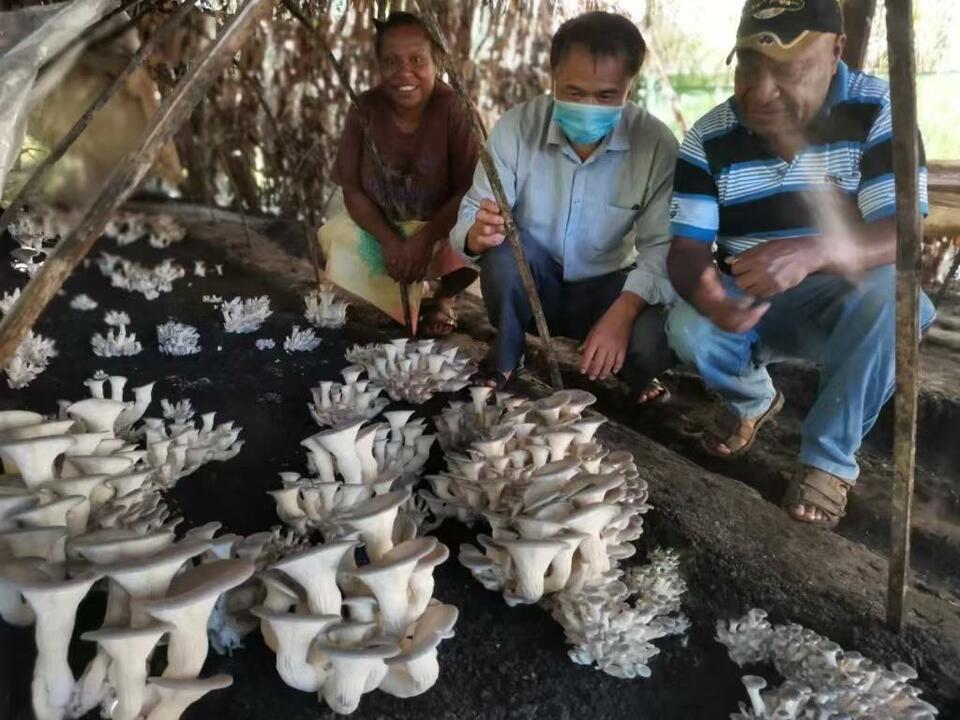 △中國援助的菌草種植蘑菇技術和産業鏈提高了巴布亞新幾內亞的農業可持續發展能力。