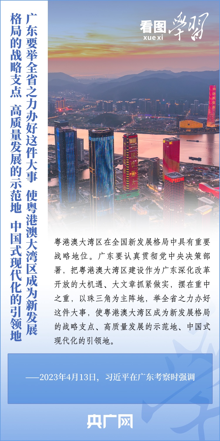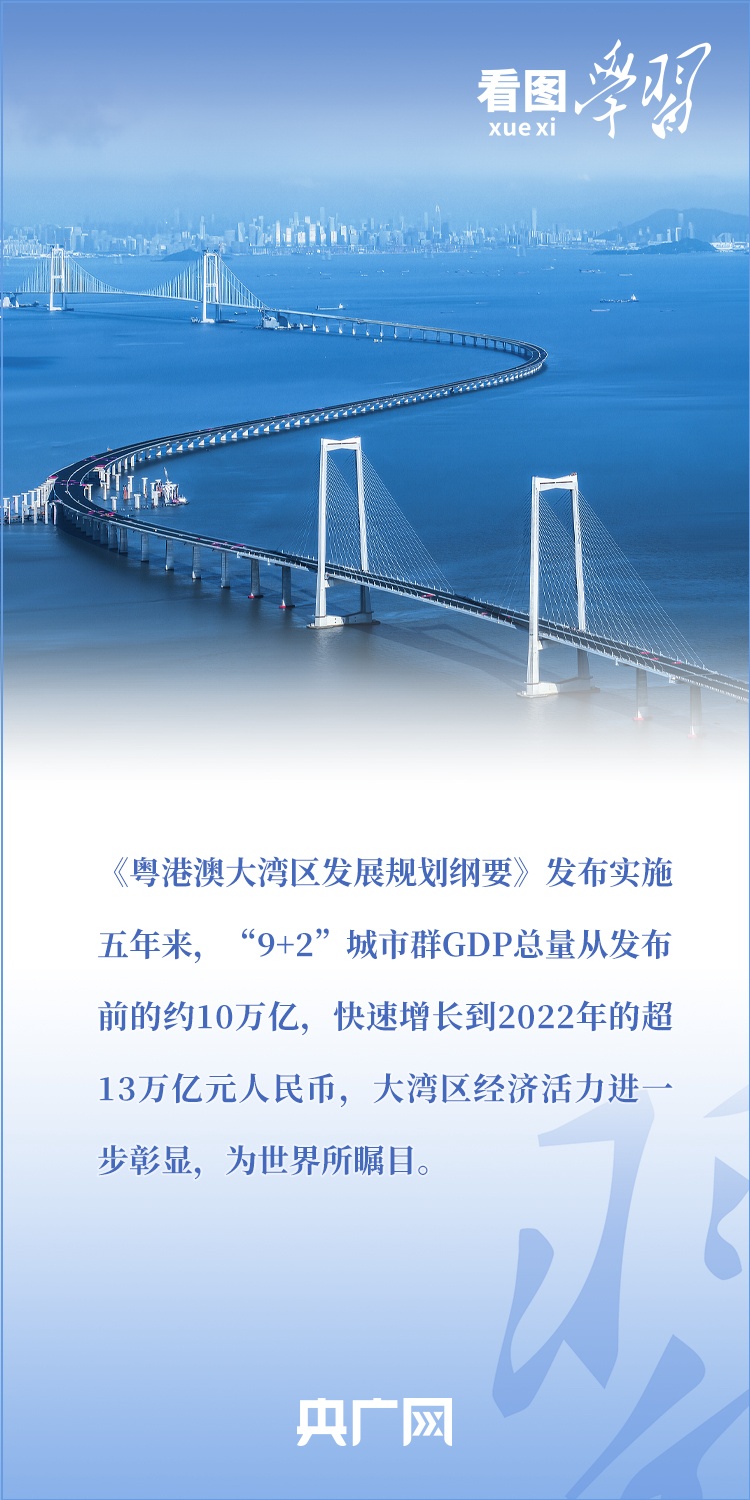 2019年2月,《粵港澳大灣區發展規劃綱要》正式發佈。五年來,習近平總書記多次作出重要部署和深刻闡述,引領推進粵港澳大灣區高水準建設。總書記強調,要使粵港澳大灣區成為新發展格局的戰略支點、高品質發展的示範地、中國式現代化的引領地。一起來學習!