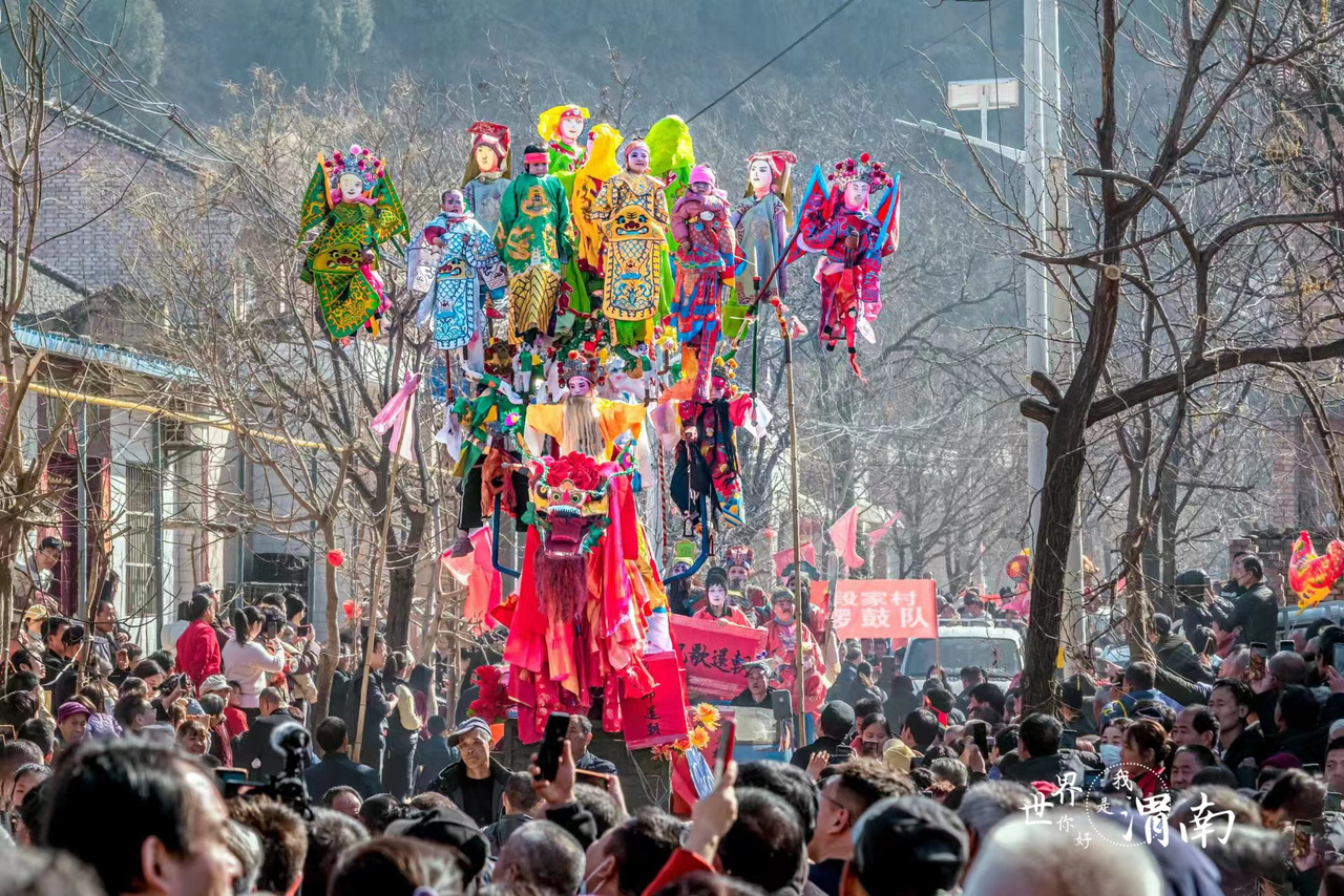 La danse du dragon doré, celle du bateau terrestre et du Yangge, ainsi que les chants de Qinqiang... Weinan, une ville dans la province de Shaanxi, en Chine, a été envahie par les tambours et les gongs, les chants et les danses pendant le premier mois de l'année lunaire, et une atmosphère animée et joyeuse s'est créée partout.