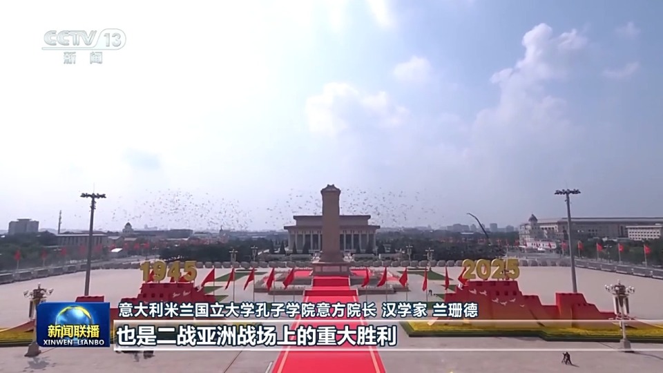 意大利米蘭國立大學孔子學院意方院長、漢學家 蘭珊德:習近平主席在重要講話中回顧説,中國人民以血肉之軀築長城,抗日戰爭是中國近代史的重要一頁,是中國共産黨倡導建立的抗日民族統一戰線的勝利,也是二戰亞洲戰場上的重大勝利。9月3日這一天應當被全世界銘記。