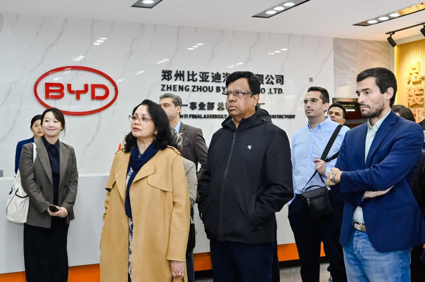 زار وفد الدبلوماسيين في اليوم الأول من الفعالية مصنع بي واي دي في تشنغتشو والذي يُعتبر قاعدة إنتاجية مهمة للشركة في وسط الصين ويغطي هذا المصنع القطاعات الخاصة بالسيارات الكهربائية وبطاريات الطاقة والمواد الجديدة ويتميز بخطوط إنتاج آلية وذكية.