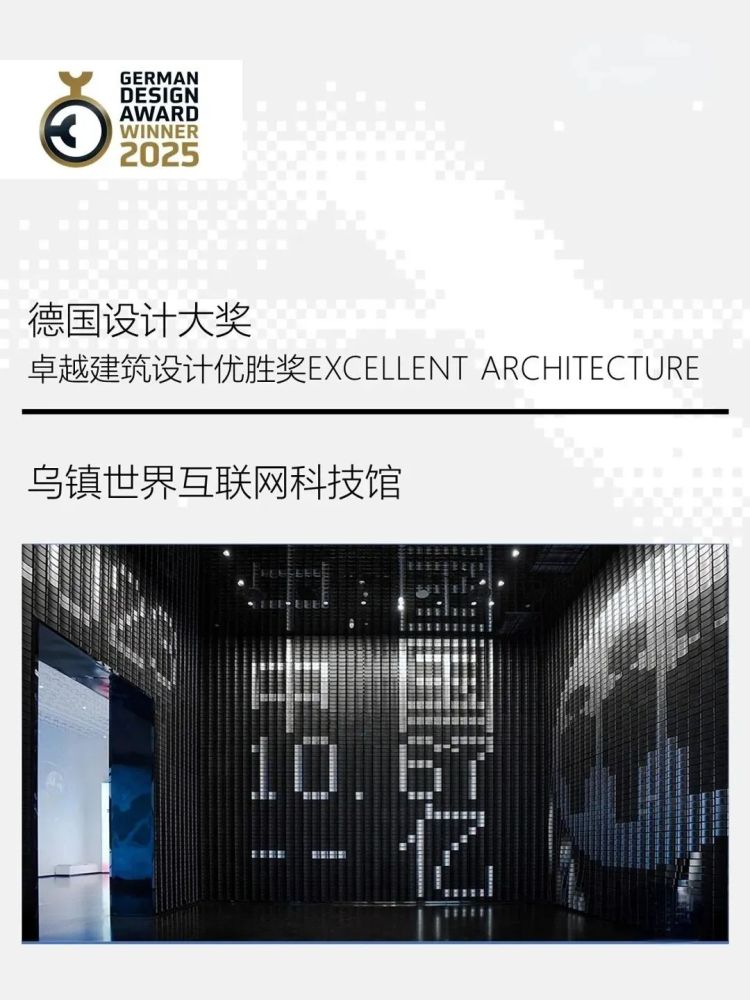 不久前,德國設計委員會(German Design Council)公佈了2025年度德國設計獎獲獎名單,烏鎮世界互聯網科技館榮獲“卓越建築設計優勝獎”。