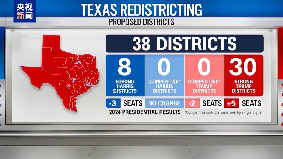 美國總統特朗普7月中旬公開要求得州重劃國會選區。8月初,得州民主黨人“出走”抗議後,美國多個州公開表示考慮重新劃分本州國會選區。8月20日,得州眾議院通過了重劃國會選區議案,有望使共和黨在2026年中期選舉時在該州多獲得5個國會眾議院席位。