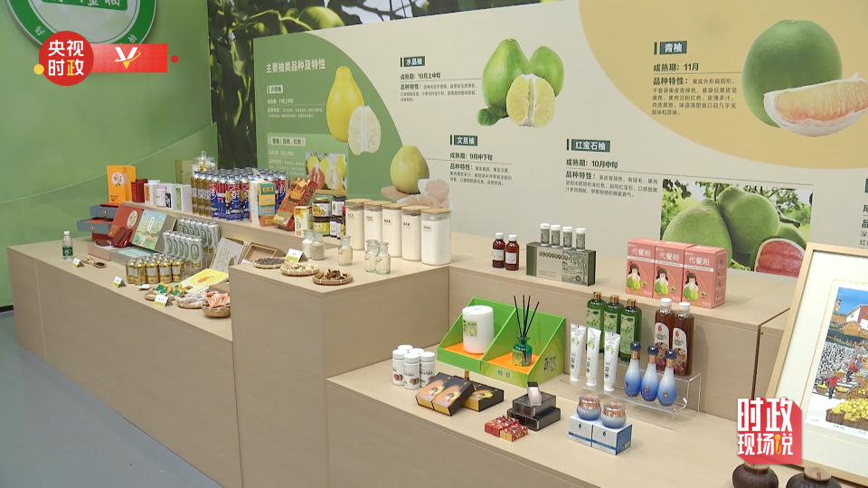基地內的金柚科技智慧展廳陳列著柚子護膚品、飲料、文創等産品,濃縮著當地多年來在種植標準化、産業鏈條化、銷售多元化等方面蓄勢發力,推動品質做優、品牌做大的生動實踐。