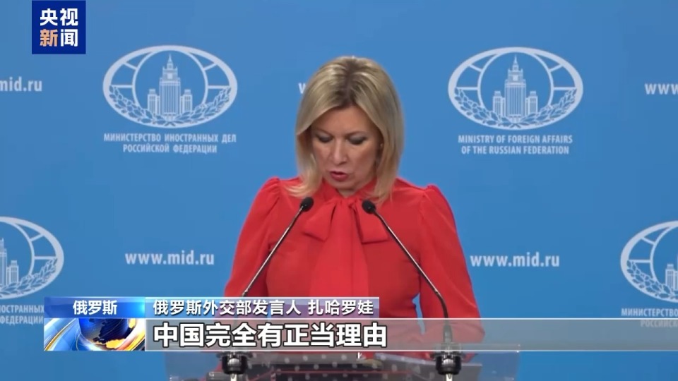 俄羅斯外交部發言人 扎哈羅娃:中國完全有正當理由捍衛其主權和領土完整。俄羅斯堅決反對西方在台灣問題上對中國採取雙重標準。作為中國在國際舞臺上的真正朋友和可靠夥伴,俄羅斯願繼續與中方在包括台灣問題在內的主權和領土完整問題上堅定相互支持。