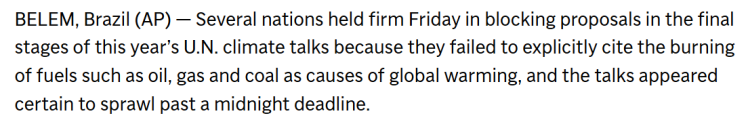 中國現代國際關係研究院世界政治研究所副研究員韓一元分析認為,各締約方在逐步淘汰化石燃料路線圖問題上以及發達國家為發展中國家籌集資金方面存在分歧,是導致本屆大會陷入僵局的主要原因。