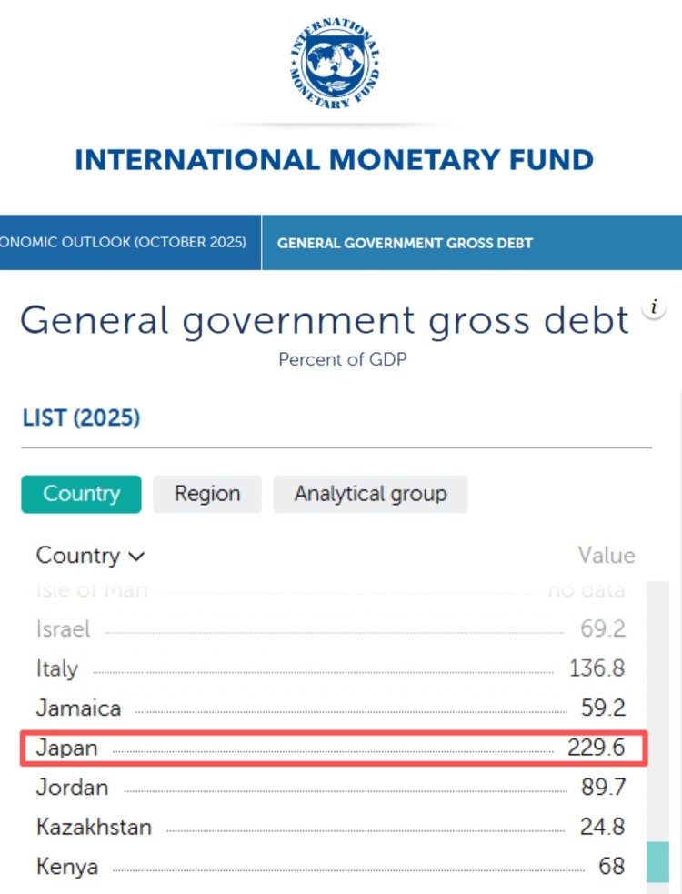如今,日本政府背負發達國家中最沉重的債務。國際貨幣基金組織的數據顯示,2025年日本政府債務規模將是國內生産總值的229.6%。國際貨幣基金組織也預測,2026年日本的財政赤字狀況將進一步惡化。