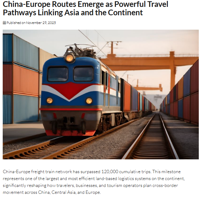 美國《旅行和旅遊世界》網站近日刊文稱,當前,中歐班列累計開行超12萬列。這一里程碑標誌著亞歐大陸建立了規模最大、效率最高的陸路物流體系,還顯著改變了中國、中亞和歐洲地區旅客、企業及旅遊經營者的跨境流動規劃方式。
