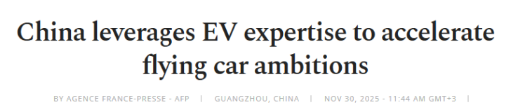近日,法新社一篇報道聚焦中國飛行汽車發展。報道指出,中國正憑藉其在電動汽車和無人機領域積累的供應鏈、技術和工程師優勢,加速推動飛行汽車産業化,並在全球競爭中佔據領先地位。