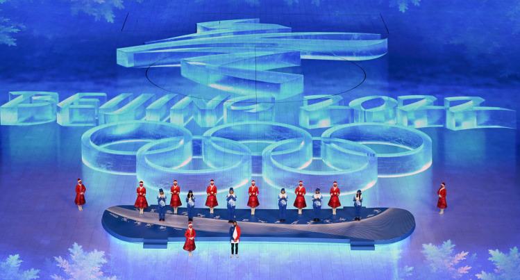 2022年2月20日晚,北京第二十四屆冬季奧林匹克運動會閉幕式在國家體育場舉行。這是向志願者致謝環節。新華社記者 李賀 攝