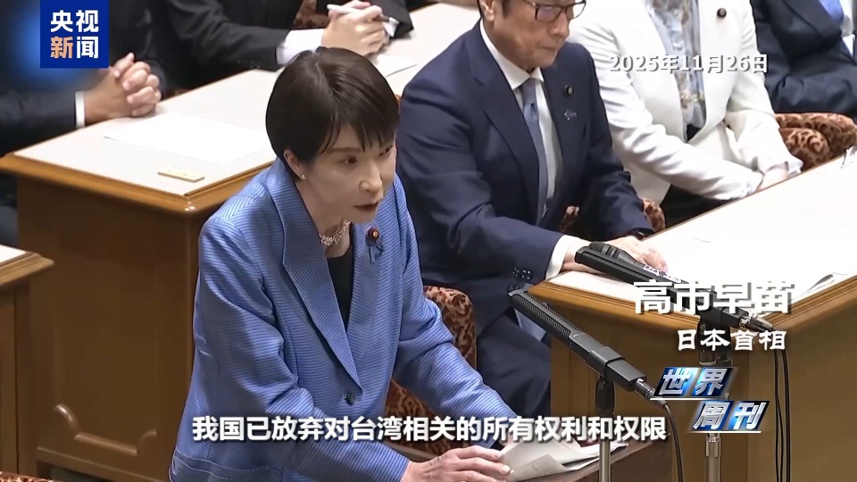 日本首相 高市早苗:根據“舊金山和約”,我國已放棄對台灣相關的所有權利和權限。因此我國不具備對台灣法律地位進行認定的立場。