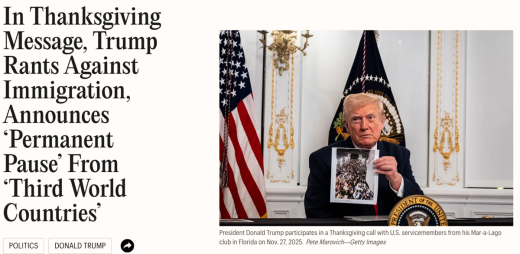 △《時代》雜誌報道,美國總統特朗普在社交媒體發表的感恩節致辭中,嚴厲抨擊了美國的5300萬外籍人口,包括合法移民。