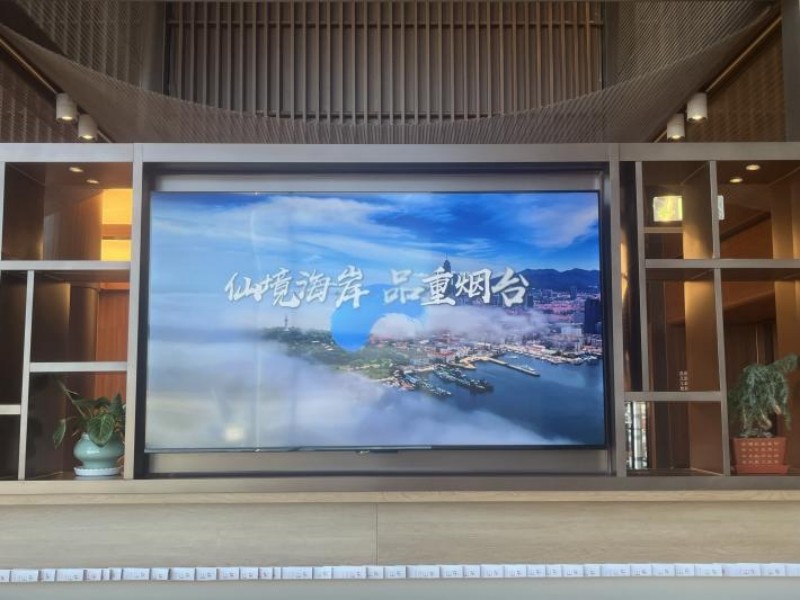 산둥항공 '루옌거(魯雁閣)' VIP라운지에서 반복 상영하는 옌타이 도시 이미지 홍보 영상, 몰입형 도시 체험 조성 [사진: 천카이]