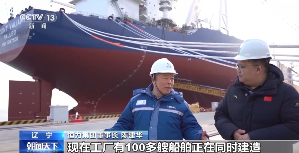 恒力集團董事長 陳建華:現在工廠有100多艘船舶正在同時建造,我們這個月還要交付10艘給客戶。我們現在工廠的手持訂單已經簽到了2030年。