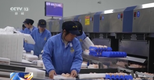 在浙江長興的雞蛋生産車間,全自動生産線高速運轉,從雞舍産出的鮮蛋,通過密閉式中央輸蛋線無縫輸送到蛋品車間。