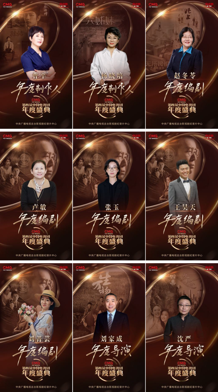 曹平、楊曉培憑藉對項目的精準把控,榮膺“年度製作人”榮譽。“年度編劇”榮譽則由趙冬苓、盧敏、張玉、王昊天、劉菁蕓獲得,“年度導演”榮譽由劉家成、沈嚴獲得。